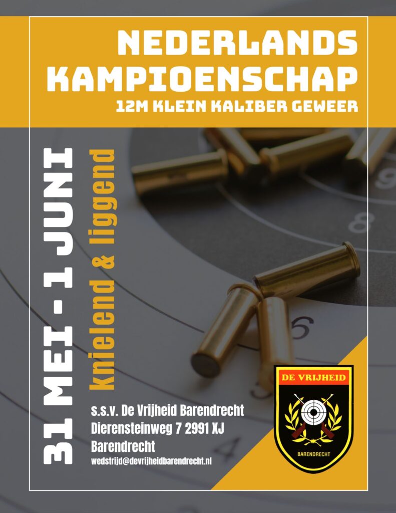 Op zaterdag 31 mei en zondag 1 juni is onze vereniging het toneel van het Nederlands Kampioenschap 12 meter knielend klein kaliber geweer (KKG). We zijn ontzettend blij en trots dat we dit kampioenschap nogmaals mogen organiseren!